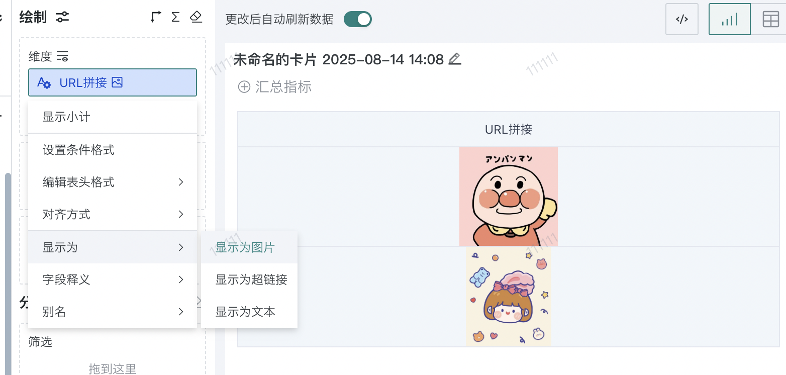 拼接之后的值展示与原图片URL一致,此时可以设置显示为图片