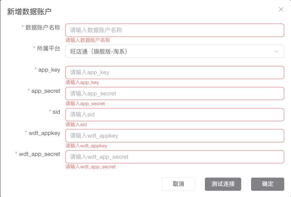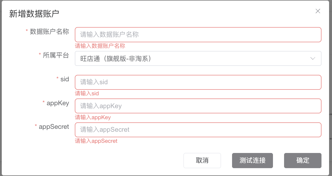 3.1 旺店通自定义新增数据账户旺店通自定义对应非淘系