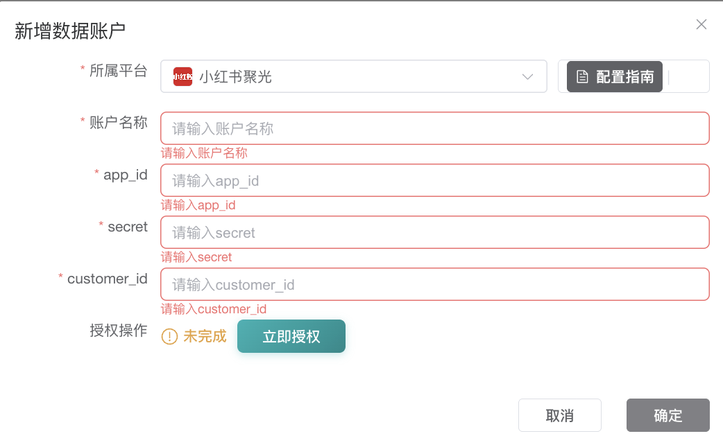 聚光填写:https://apiconnector.guandata.com/auth-callback/XIAOHONGSHU_JUGUANG