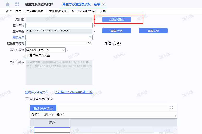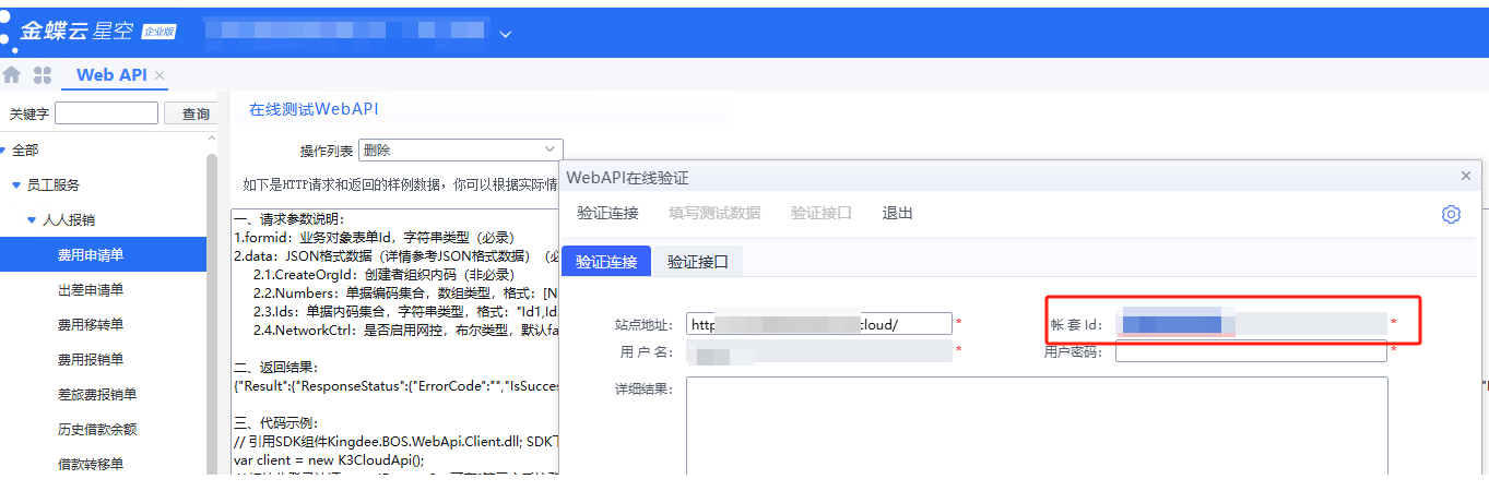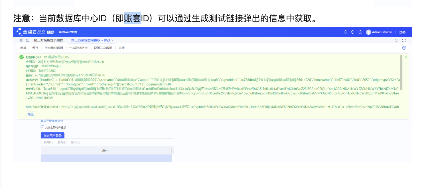 本文用于指导客户先完成金蝶云星空侧准备,再将所需鉴权信息填写到观远 API 连接器中。金蝶侧配置建议以官方文档金蝶云星空 OpenAPI 说明为准。1. 配置前准备1.1 创建应用并获取应用信息请客户按金蝶官方文档金蝶云星空 OpenAPI 说明创建第三方应用,并取得:AppIDAppSecret这两个值分别对应官方文档中的应用ID和应用密钥1.2 集成用户此外也可指定用户进行登录,新增后保存用户名和密码2. 连接器字段填写说明当前连接器页面需要填写的核心字段如下。2.1 domain填写金蝶云星空访问根地址,例如:https://erp.example.com获取方式:客户日常登录金蝶云星空时浏览器地址栏中的主域名2.2 loginUrl建议填写为:%s/K3Cloud/Kingdee.BOS.WebApi.ServicesStub.AuthService.ValidateUser.common.kdsvc其中 %s 会由连接器自动替换为上面的domain。2.3 acctID填写目标账套 ID或者在此处查看2.4 username1.2申请的账号2.5 password1.2申请的密码2.6 appId填写金蝶应用AppID2.7 appSecret填写金蝶应用AppSecret2.8 lcid填写语言标识,中文简体环境通常为:20523. 配置示例123456789账户名称:*****domain:https://erp.example.comloginUrl:%s/K3Cloud/Kingdee.BOS.WebApi.ServicesStub.AuthService.ValidateUser.common.kdsvcacctID:******username:api_userpassword:******appId:kd_xxx_appidappSecret:kd_xxx_secretlcid:2052如果不使用用户登录,用户名随意填写,密码填写空格即可4. 注意事项4.1 domain 不要填写错domain 应填写站点根地址,不要填写成:带 /k3cloud/ 的完整路径某个具体接口地址登录接口地址本身4.2 当前版本会优先使用用户名密码登录只要password非空,连接器就会优先使用用户名密码登录。